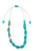 Bei der verspielten Holzkette Eliene stehen die geschnörkelten Perlenschnüre im Vordergrund. Es gibt sie in einer Poppigen Variante, aber auch in einer Eleganteren.